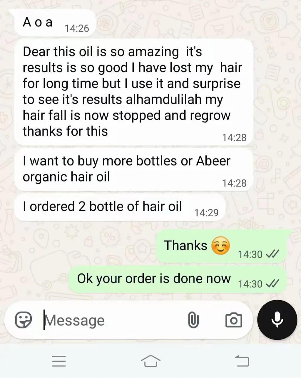 یہ تیل خالص اجزاء اور جڑی بوٹیوں کو پکا کر بنایا گیا ہے۔ اس تیل کی خصوصیت یہ ہے کہ یہ بالوں سے متعلق تمام مسائل کا شرطیہ خاتمہ کرتا ہے۔